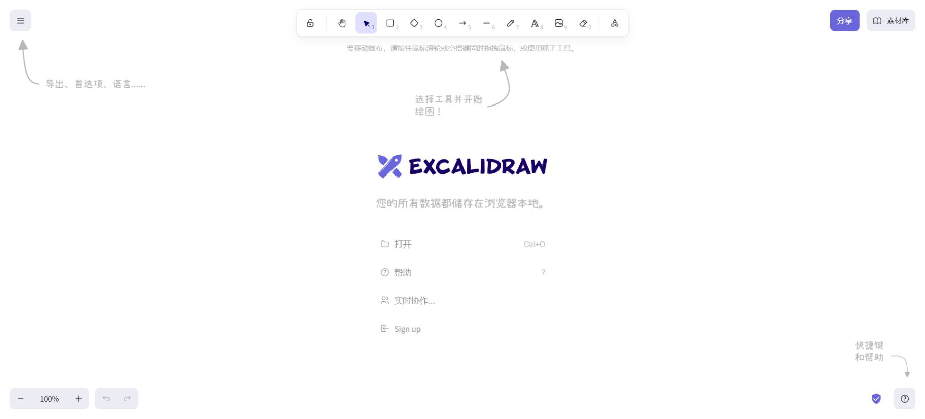 Excalidraw 免费在线流程图、架构图、思维导图、UI 原型制作工具
