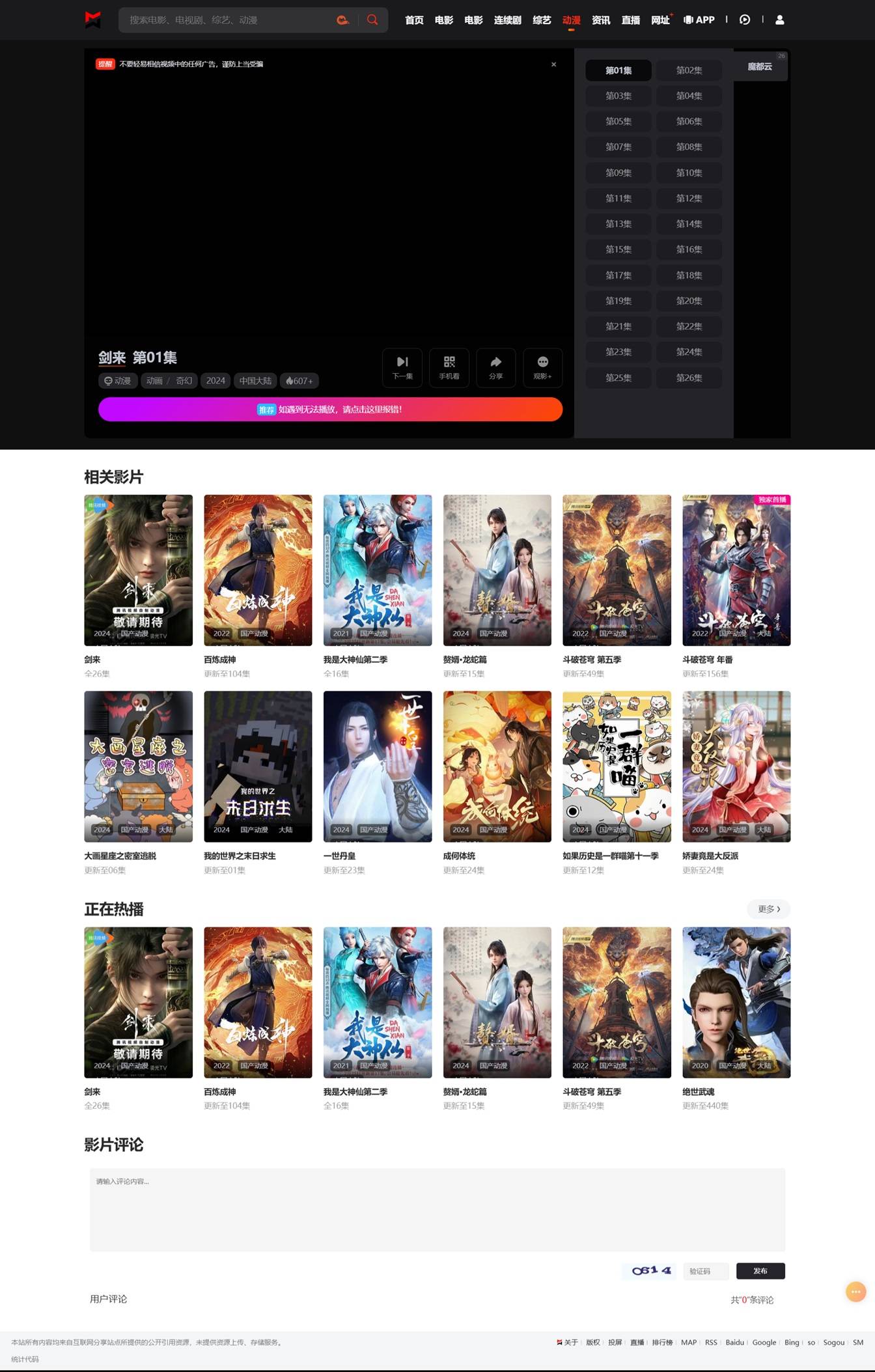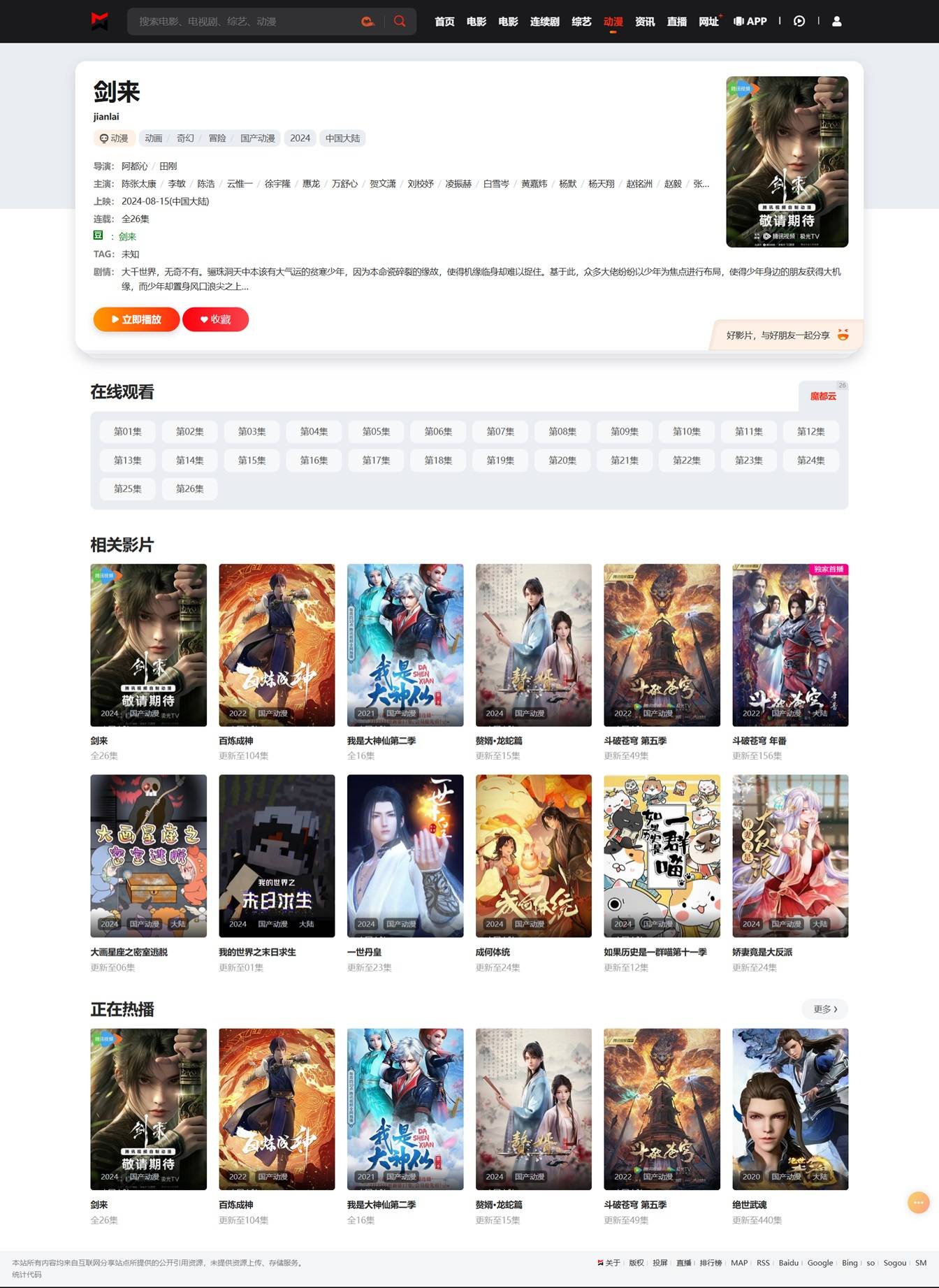 MXone影视视频苹果CMSV10模板源码分享给大家,模板设计得很精美大气。这套影视模板可以切换黑白两种模式的页面效果,黑夜版就是黑色的页面,白天版就是白色的页面。首页可以展示超大的幻灯片轮播,并且拥有留言本、排行榜、资讯等等。